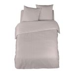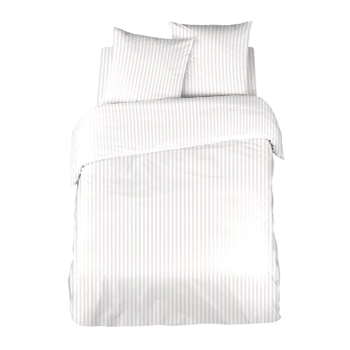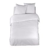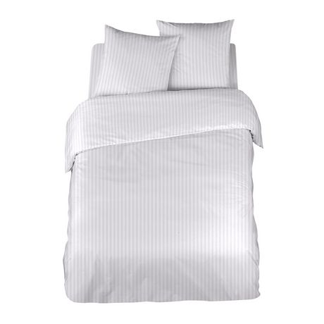 Le satin de coton, tout comme la percale, est un procédé de tissage très fin et très serré. Le toucher du satin est soyeux, mais contrairement au satin de polyester, il ne glisse pas. Cette matière en pur coton apportera brillance à votre linge de lit tout en restant léger et respirant grâce à sa fibre naturelle. Le satin de coton permet de faire parfois des jeux de lumières et on peut obtenir des bandes mates et brillantes créant ainsi un dessin pour plus d'élégance. Le satin de coton est très qualitatif et durera dans le temps.