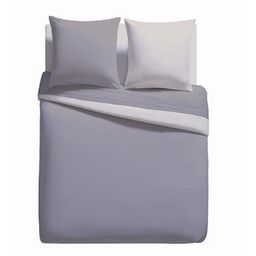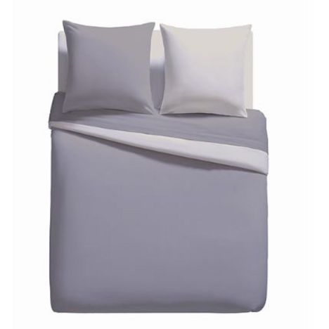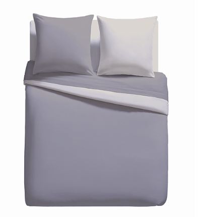 Parure housse de couette bicolore 100% polyester. Grande sensation de confort et régularisation des températures chaud en hiver froid en été. Finition bouton.