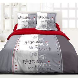En savoir +Parure housse de couette + taies d'oreiller en toile pur coton. Une bonne dose d'humour, un zeste de tendresse et beaucoup de modernité... un cocktail gagnant pour un linge de lit craquant ! A noter, le verso rouge uni de la housse de couette qui lui donne un joli coup de peps. Housse de couette à base droite.