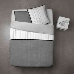 Parure housse de couette + taies d'oreiller en flanelle pur coton. Douce, chaude, légèrement duveteuse, la flanelle vous offre un confort délicieusement douillet. Associée à un motif graphique en noir/blanc/gris très contemporain, c'est LE linge de lit à s'offrir sans attendre et à savourer tout au