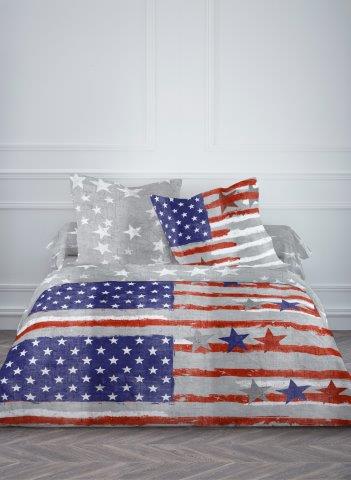 Parure housse de couette coton motif AMERIQUE