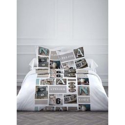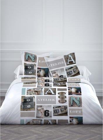 Parure housse de couette + taies d'oreiller en toile pur coton tissée bien serré, confortable et douce au toucher. Nouveau, les tendances industrielle et "récup" qui font fureur dans les intérieurs contemporains s'invitent aussi sur le linge de lit ! Original et super déco ! A noter, les 2 faces dif