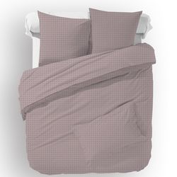 Parure housse de couette + taie(s) d'oreiller en toile pur coton entièrement imprimée d'un micro motif géométrique. Un linge de lit intemporel revisité dans des tons actuels, c'est très tendance et ça nous plaît bien ! Housse de couette avec rabat de pied.