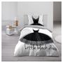 En savoir +Parure housse de couette 1 personne + taie d'oreiller en toile pur coton. Un brin coquine et féminine en diable, la petite robe noire s'invite dans la chambre ! C'est charmant, original, super déco... on adore, et on s'offre en même temps le coussin assorti ! Housse de couette à base droite pressionnée.