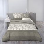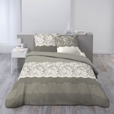 Parure housse de couette en coton 57 fils esprit romantique impression dentelle