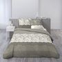 Parure housse de couette + taies d'oreiller en toile pur coton tissée bien serré, confortable et douce au toucher. Tout le charme d'un motif dentelle, associé à la belle modernité des couleurs... un linge de lit qui donne du chic et une vraie personnalité à la chambre ! Housse de couette à base droi
