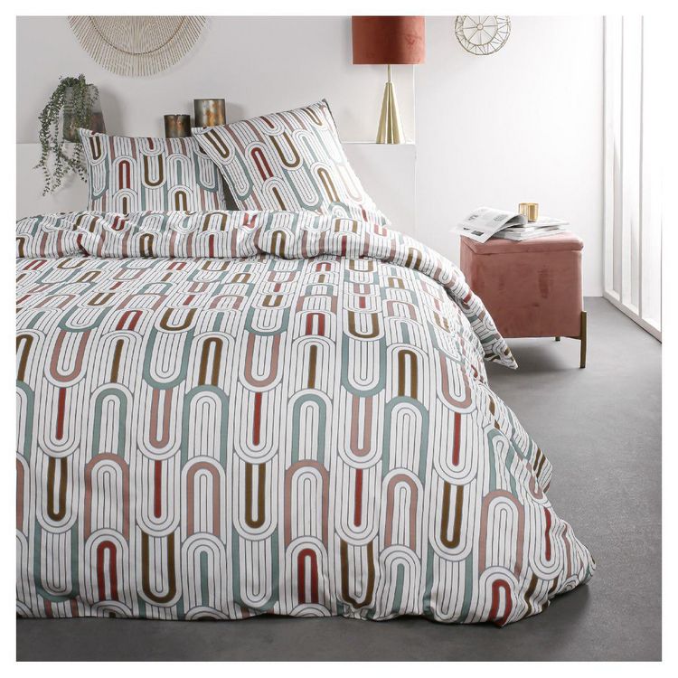 Parure housse de couette en coton 57 fils motif géométrique AMBRE