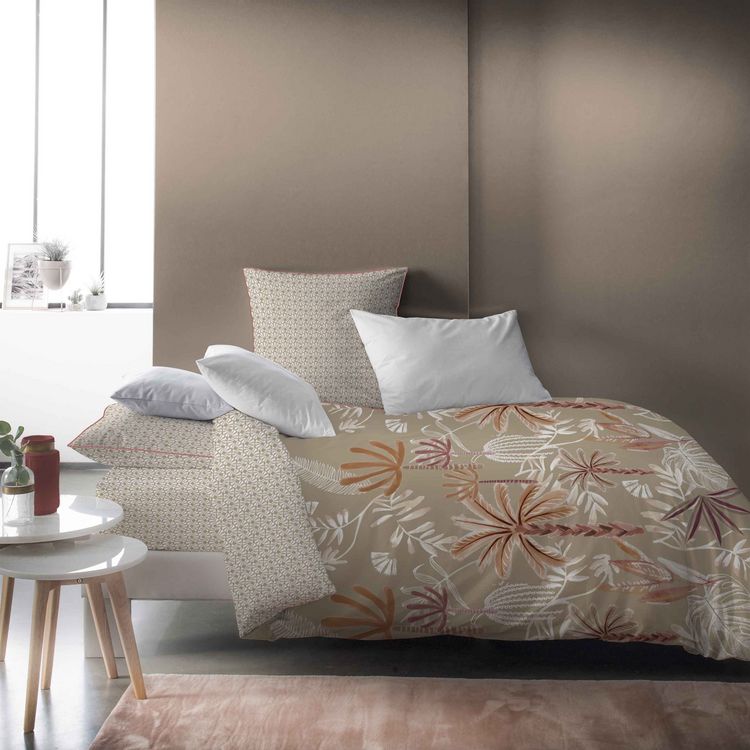 Parure housse de couette en coton 57 fils motif palmier CASSIE