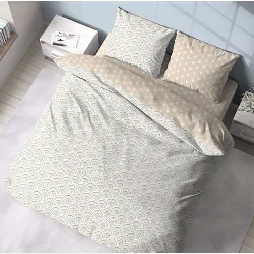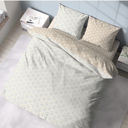 Parure housse de couette 1 ou 2 personne(s) + taie(s) d'oreiller en toile pur coton tissée très serré, très douce au toucher, confortable, résistante et labellisée OEKO TEX (garantie d'une fabrication sans aucun produit toxique pour l'homme et l'environnement). Elégance d'un motif "éventail" d'inspiration Art Déco, subtilité des couleurs, réversibilité de l'ensemble pour multiplier les combinaisons... un linge de lit qui cultive un raffinement tout en finesse. Housse de couette à rabat de pied.