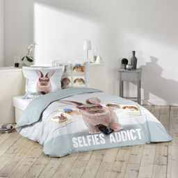 En savoir +Parure housse de couette + taies d'oreiller en toile pur coton. Une bonne dose d'humour, de jolies couleurs et un charme fou... un linge de lit IRRESISTIBLE, à s'offrir d'urgence pour se coucher en souriant et se réveiller joyeusement ! Taies réversibles (1 lapin sur 1 face, 4 sur l'autre).
