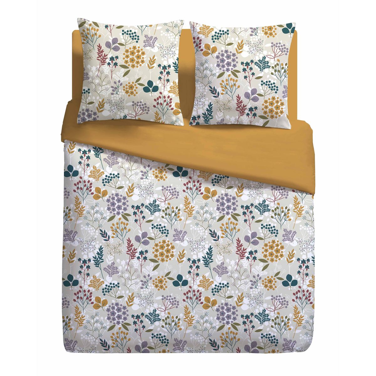 Parure housse de couette 1 ou 2 personne(s) + taie(s) d'oreiller en microfibre. Un ravissant imprimé floral dans une harmonie de couleurs aussi subtile qu'actuelle... charme et modernité s'invitent dans la chambre ! Côté matière, une microfibre ultra douce, légère et respirante, tiède en hiver et fraîche en été, qui sèche en un clin d'oeil et ne se repasse pas. Un linge de lit de rêve, à compléter avec le drap-housse uni cooordonné pour que le plaisir soit complet. Housse de couette base droite.