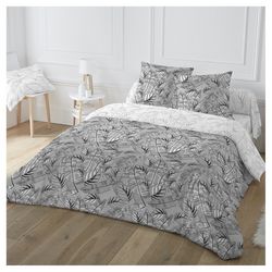 Parure housse de couette 1 ou 2 personne(s) + taie(s) d'oreiller en toile polyester/coton. Un superbe motif feuillage tropical, une face sombre et l'autre claire, pour nous permettre de multiplier les associations... un linge de lit qui conjugue élégance et modernité. Côté matière, c'est une toile facile à vivre qui sèche vite et ne demande qu'un léger repassage. Housse de couette à base droite, drap-housse coordonné vendu sur notre site.