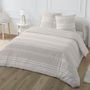 Parure housse de couette 1 ou 2 personne(s) + taie(s) d'oreiller en polycoton 52% polyester et 48% coton. Fines rayures et carreaux légers dans une harmonie en blanc et gris chic et actuelle... un linge de lit élégant qui se sent bien dans tous les styles de chambres. Housse de couette à base droite.