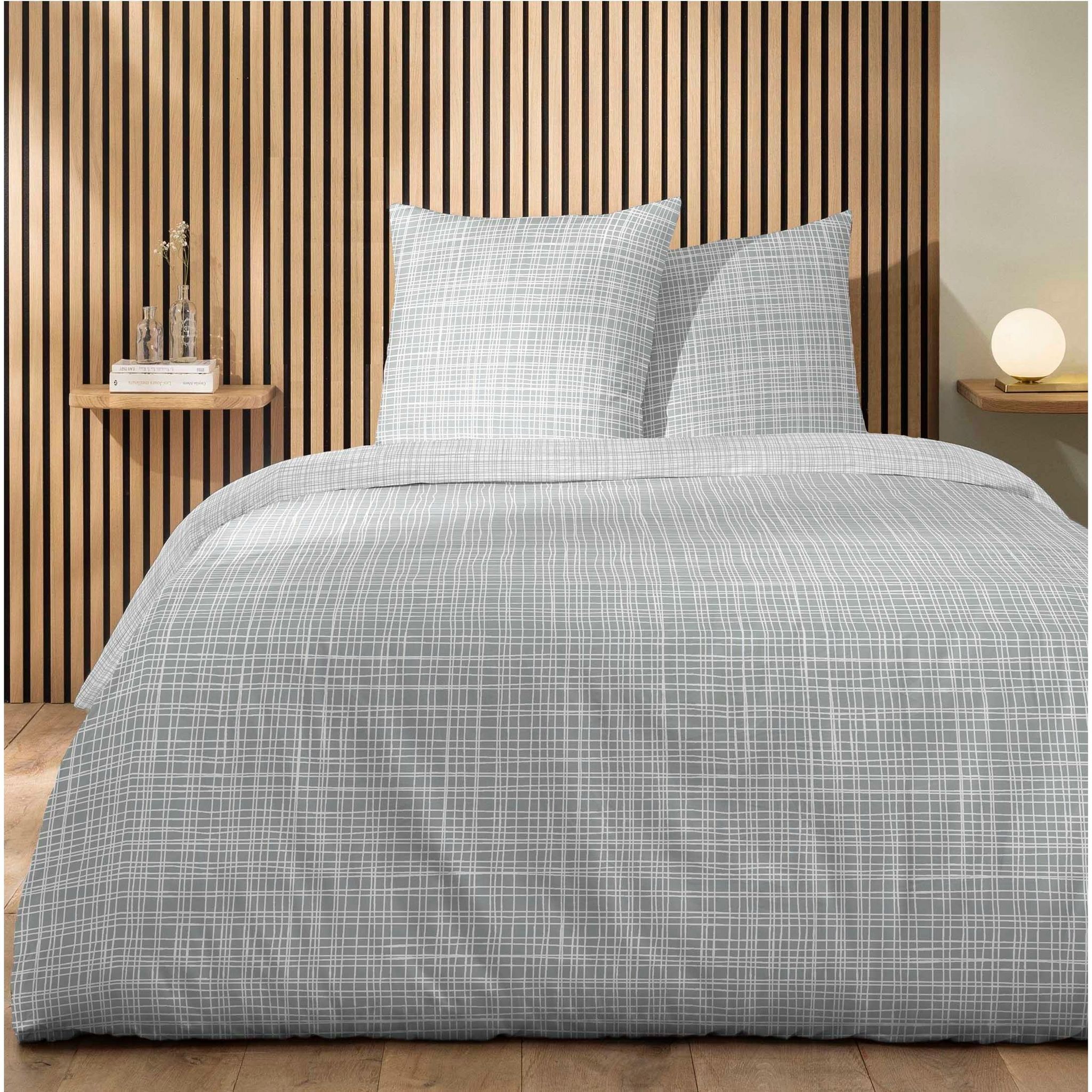 Parure housse de couette en polycoton + drap housse offert GRILLE