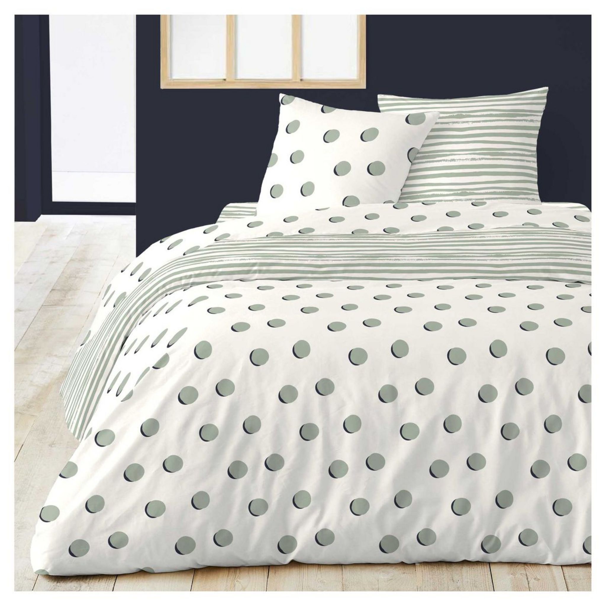 Parure housse couette satin coton 70 fils motif pois Angèle.