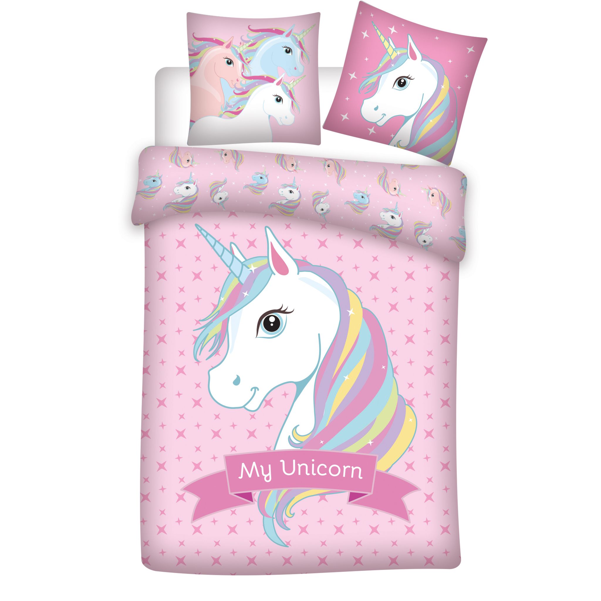 Découvrez la parure housse de couette enfant en polyester réversible imprimée LICORNE ! Cette parure licorne est parfaite à offrir pour le plaisir de vos enfants ! Grâce à son côté réversible, il est possible de changer le look de la chambre selon vos envies.