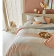 Parure housse de couette 1 ou 2 personne(s) + taie(s) d'oreiller en toile pur coton tissée bien serré, douce au toucher, confortable et résistante. Motif graphique sobre et chic, belle harmonie de couleurs raffinées, un linge de lit très contemporain qui apporte un vrai "plus déco" à la chambre. Housse de couette à rabat de pied, pour rester toujours bien bordée.