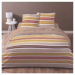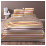 En savoir +Parure housse de couette 1 ou 2 personne(s) + taie(s) d'oreiller en microfibre. Safran, curry, paprika, muscade... des couleurs épicées qui donnent du peps à ce linge de lit rayé sur toute la ligne ! Côté matière, c'est une microfibre super douce, légère et respirante, qui vous offre fraîcheur en été et tiédeur en hiver. Et côté entretien, un séchage ultra rapide et pas de repassage. Une parure de rêve à s'offrir les yeux fermés avec le drap-housse coordonné ! Housse de couette à base droite.
