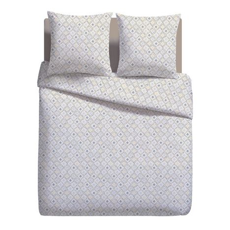 Parure housse de couette 1 ou 2 personne(s) + taie(s)d'oreiller en microfibre. Côté look, un petit motif géométrique dans une harmonie de tons grisés élégante et reposante. Côté matière, une microfibre douce et légère, fraîche en été et tiède en hiver, qui vous offre une merveilleuse sensation de bi