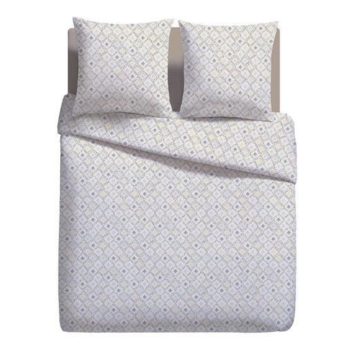Parure housse de couette 1 ou 2 personne(s) + taie(s)d'oreiller en microfibre. Côté look, un petit motif géométrique dans une harmonie de tons grisés élégante et reposante. Côté matière, une microfibre douce et légère, fraîche en été et tiède en hiver, qui vous offre une merveilleuse sensation de bien-être. Côté entretien, un séchage ultra-rapide et pas de repassage. Une parure de rêve, à s'offrir avec le drap-housse assorti pour que le plaisir soit complet ! Housse de couette à base droite.