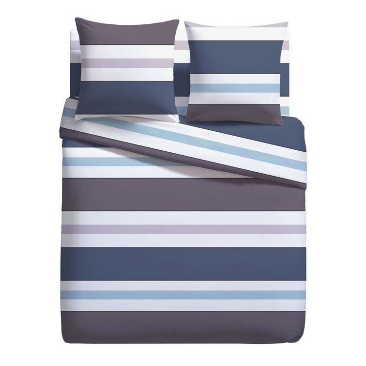 Parure housse de couette 1 ou 2 personne(s) + taie(s) d'oreiller en microfibre. D'abord on craque pour ces rayures aux couleurs sobres et chics, un peu masculines, pile dans la tendance ! Puis nuit après nuit, on savoure le confort incomparable de la microfibre, légère, souple, ultra douce et respirante, qui sèche en un clin d'oeil et ne se repasse pas. Un linge de lit de rêve... à s'offrir les yeux fermés avec le drap-housse coordonné. Housse de couette à base droite.
