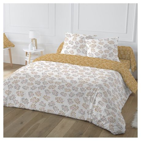Parure housse de couette 1 ou 2 personne(s) + taie(s) d'oreiller en toile polyester et coton. Un ravissant motif végétal doublé d'un verso super déco pour une chambre paisible où il fait bon vivre, et une matière douce au toucher qui sèche vite et ne demande qu'un léger repassage... un linge de lit à s'offrir les yeux fermés, avec le drap-housse coordonné pour que le plaisir soit complet ! Housse de couette à base droite.