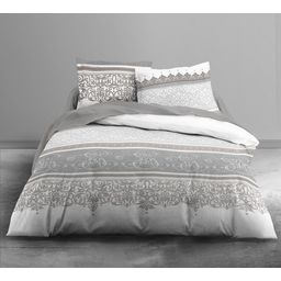 Parure housse de couette + taies d'oreiller en toile pur coton tissée bien serré, confortable et douce au toucher. Dentelles, anglaises et arabesques, un linge de lit qui revisite délicieusement l'esprit baroque. Le charme à l'état pur, qu'on aime autant dans une chambre contemporaine que dans une déco plus classique.