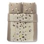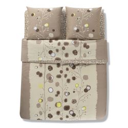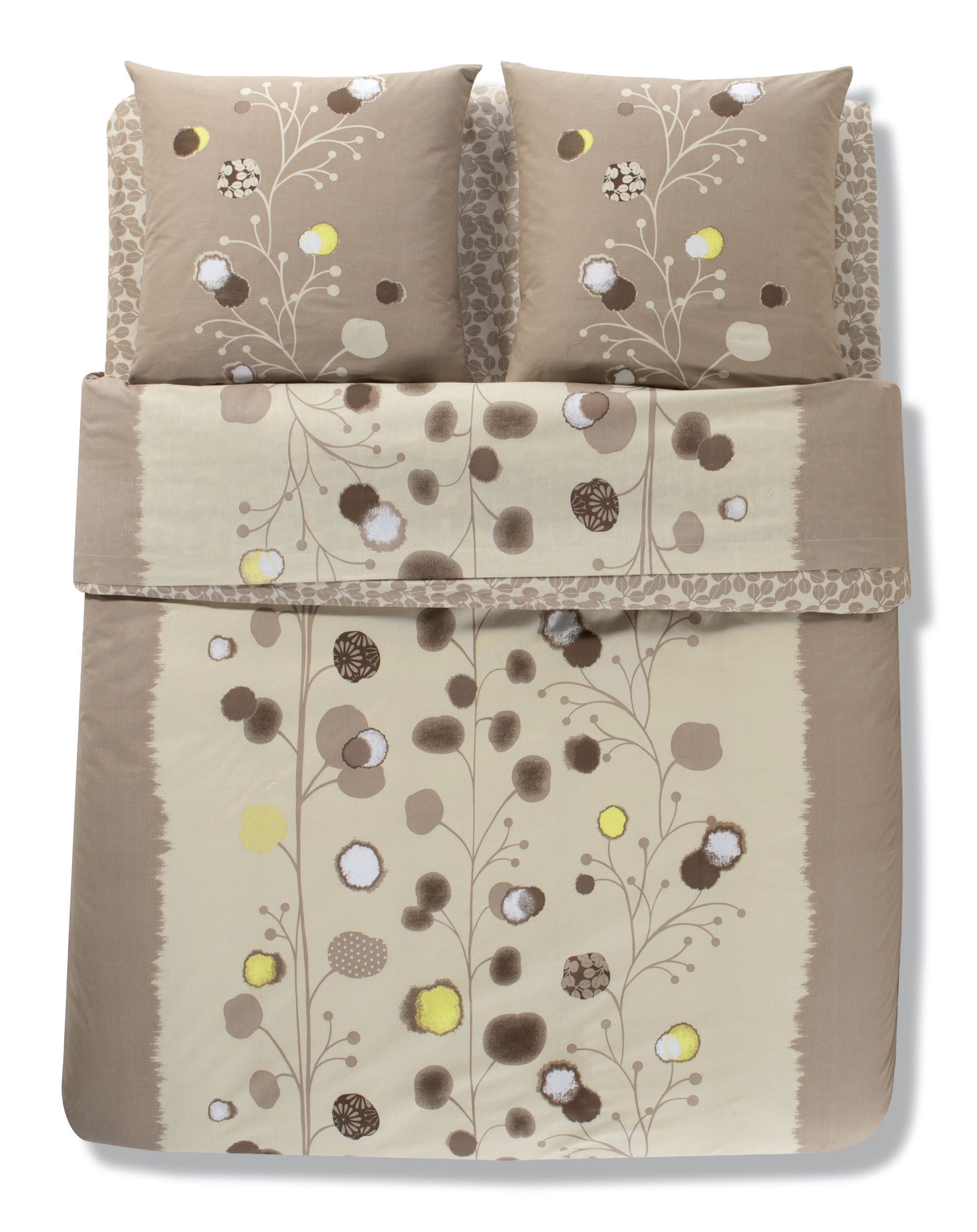 Parure housse de couette 2 personnes + 2 taies d'oreiller en toile pur coton. Belle modernité du dessin et des tons neutres joliment rehaussés de touches plus vives... un linge de lit pour une chambre chic et actuelle.