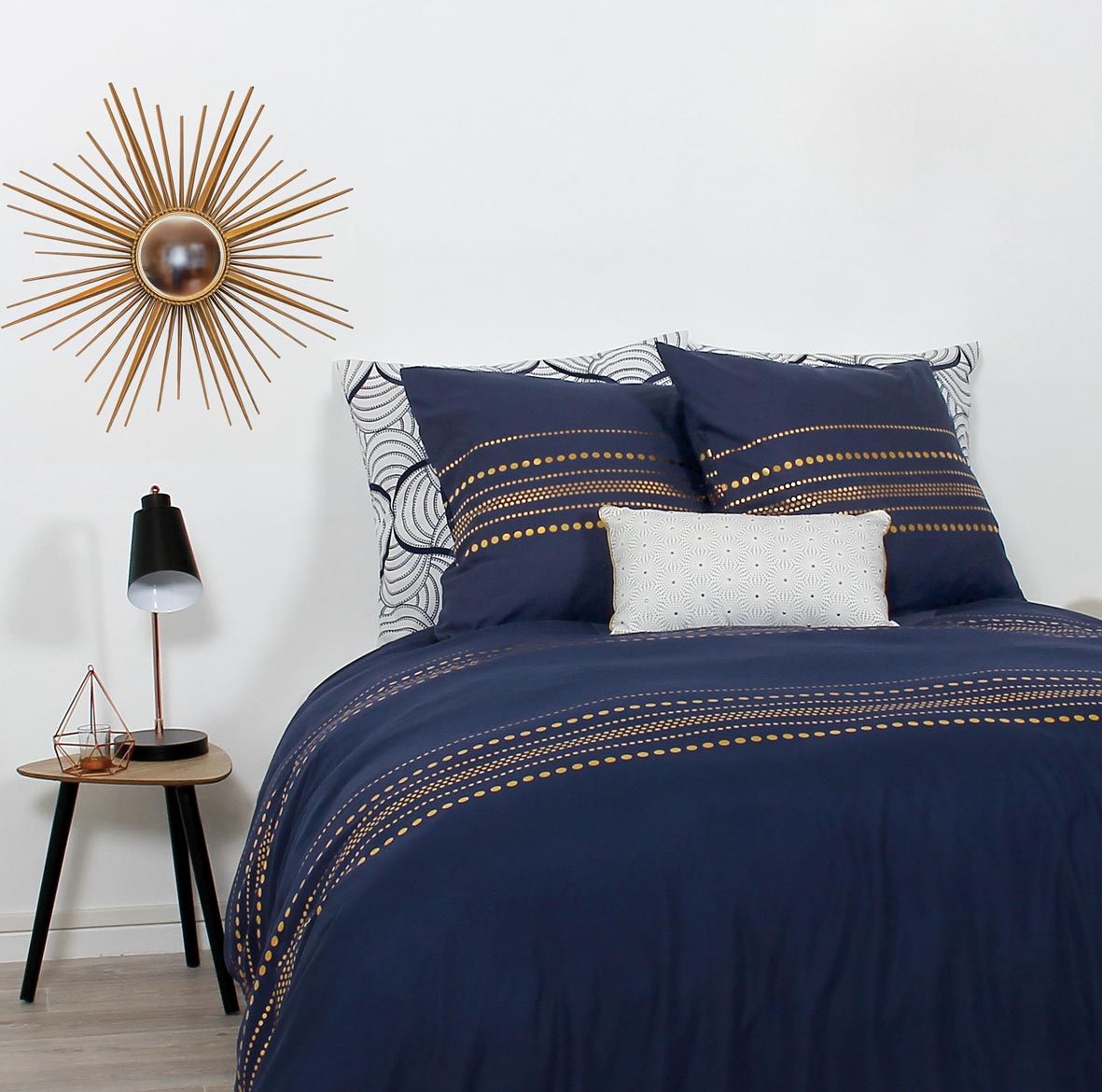Parure housse de couette microfibre impressions pastilles dorées MARCUS