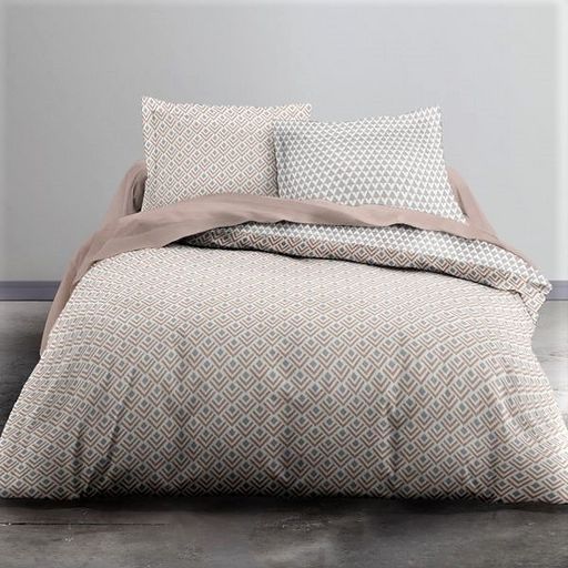 Parure housse de couette + taies d'oreiller en microfibre. Elégante grâce à ses motifs géométriques soignés, elle saura sublimer votre chambre. Un linge de lit qu'on choisit aussi parce qu'il est ultra doux, très confortable (respirant, il est tiède en hiver et frais l'été) et super facile vivre (s