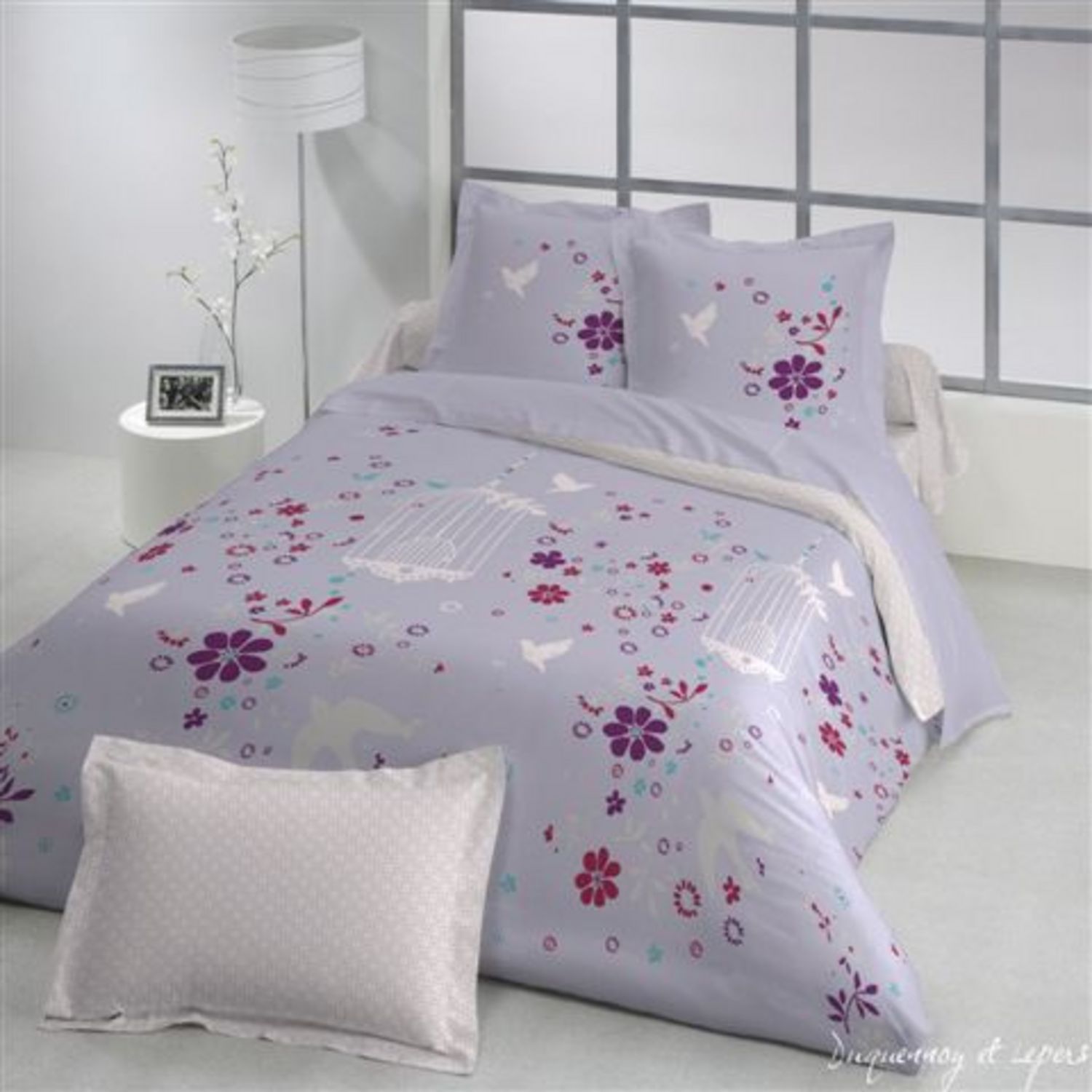 En savoir +Parure housse de couette 1 ou 2 personnes (à rabat de pied) + 1 ou 2 taies d'oreiller en toile pur coton. Un dessin délicat, des couleurs douces et modernes à la fois, un linge de lit raffiné qui apporte une vraie touche déco à la chambre.