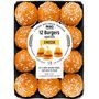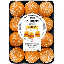 12 mini brioches garnies d’une préparation à base de viande bovine assaisonnée cuite et d’une préparation fromagère fondue, décongelées.