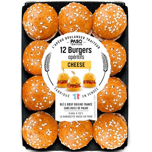 Fans d'apéro et de burgers ? Nous aussi ! Laissez-vous tenter par nos Cheese Burgers Cocktail, parfaits pour l'apéro : de délicieux petits buns briochés fabriqués dans notre atelier boulanger, une sauce fromagère onctueuse, un haché de bœuf et une sauce ketchup aux petits oignons et cornichons.