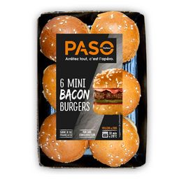 6 MINI BRIOCHES GARNIES DE STEAK HACHE ET DE POITRINE CUITE FUMEE DECONGELEES