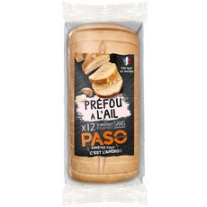 Ingrédients : Farine de blé 49% (origine France), beurre 20%, eau, ail 10%, sel, levure, farine fermentée de blé, vinaigre d’alcool, poivre.