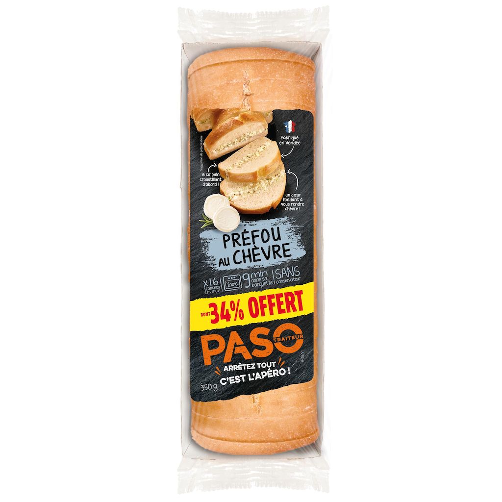 Un délicieux pain généreusement garni de fromage de chèvre et inspiré du savoir-faire traditionnel des boulangers Vendéens. Avec ses 16 tranches, il est idéal à partager entre amis ou en famille à l'apéro. Un bon goût de terroir dans une recette de caractère qui relèvera vos apéritifs. Pratique, il se réchauffe en 9 minutes au four (200°C) et directement dans sa barquette carton. Farine de Blé Français, Sans Conservateur, Fabriqué en Vendée. PASO, Arrêtez tout, c'est l'Apéro !