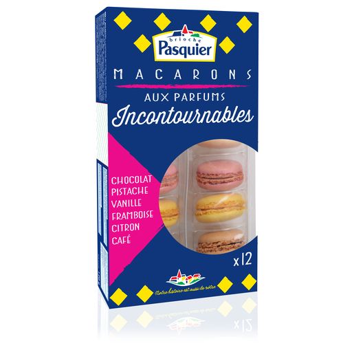 Ingrédients : Produit décongelé. INGREDIENTS : Sucre - Blancs d'OEUFS - AMANDES en poudre - CREME - Farine de BLE - Huile végétale (colza) - LAIT écrémé en poudre - Amidon de maïs - Blancs d'OEUFS en poudre - Chocolat 0.5% (pâte de cacao, sucre, beurre de cacao, émulsifiant : lécithine de SOJA) - Colorants : rouge de betterave, curcumine, anthocyanes - Cacao maigre en poudre 0.2% - Brisures de framboise 0.1% - Arôme naturel de vanille - Extrait de malt d'orge (GLUTEN) - Gélifiant : pectines - Arôme naturel de framboise avec autres arômes naturels 0.09% - Arôme naturel de café 0.07% - PISTACHES hachées 0.07% - Sirop de glucose-fructose - Arôme naturel - Sucre caramélisé - Café liquide 0.04% - Spiruline - Concentré de citron 0.03% - Stabilisants : gomme de xanthane, carraghénanes - Arôme naturel de citron 0.02% - Acidifiant : acide citrique - Agent moussant : citrate de triéthyle - Huile essentielle de citron, CACAHUÈTES / ARACHIDES