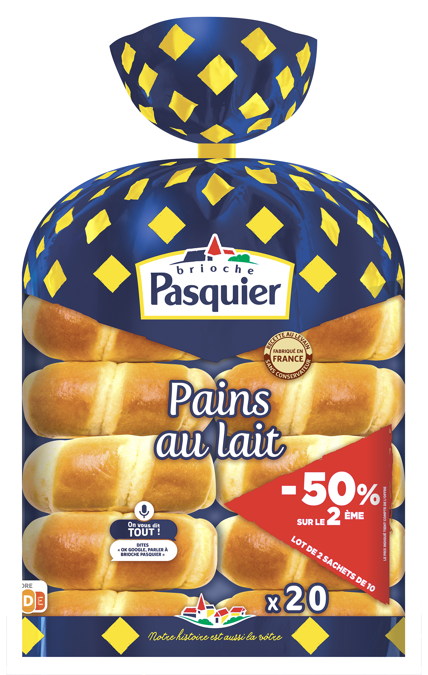 Ingrédients : Ingrédients: Farine de BLÉ 41% - Levain 20% (farine de BLE 11%, eau, sel) - OEUFS frais 11% - Sucre - BEURRE pâtissier - Huile de colza - Levure - LAIT écrémé en poudre (équivalent à 10% de LAIT écrémé reconstitué) - Emulsifiant: mono et diglycérides d'acides gras - Sel - Protéines de BLE - GLUTEN de BLE - Extrait de carotte - Arômes - Agent de traitement de la farine: acide ascorbique - Protéines de LAIT. Ce produit contient : BLÉ, OEUFS, LAIT, GLUTEN. Ce produit a pu être en contact avec : Soja, Arachide, Fruits à coque.
