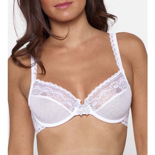 En savoir +On craque pour ce charmant soutien-gorge transparent Passionata au look ultra-féminin ! On apprécie tout particulièrement la rondeur des bonnets et leur maintien extrême. Maille douce et légère. On craque pour le jeu de dentelle et de tulle plumetis. Finition féminine au décolleté. Bretelles ajustables, nœud fantaisie à l'entrebonnet. Il est conseillé de le laver à la main. Portez ce soutien-gorge à armatures Passionata avec la culotte assortie.