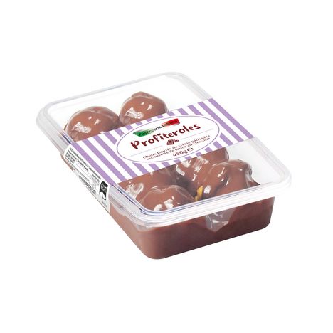 Dessert à base de choux 7.7%, à la crème pâtissière 40%, recouverts de sauce au chocolat 52.3%
