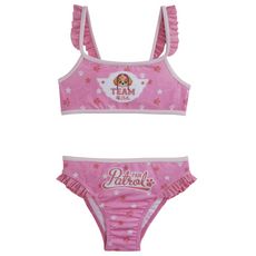 Look girly même à la plage avec ce bikini fille à l'effigie de la Pat'Patrouille. Agréable à porter. On aime : son coloris girly et ses volants fantaisie. Haut : forme bandeau, fines bretelles animées de volants. Culotte de bain coordonnée : taille élastiquée, volants sur les côtés, fond doubl