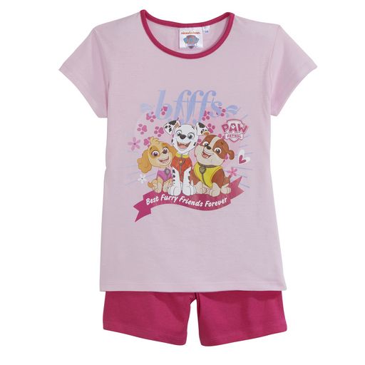 Ce pyjashort Pat'Patrouille pour petite fille assure des nuits reposantes et agréables ! On aime sa matière légère et confortable. Haut : tee-shirt imprimé sur le devant, col rond, manches courtes. Bas : short uni, taille élastiquée. Ce pyjashort fille Pat'Patrouille est lavable en machine à 40°