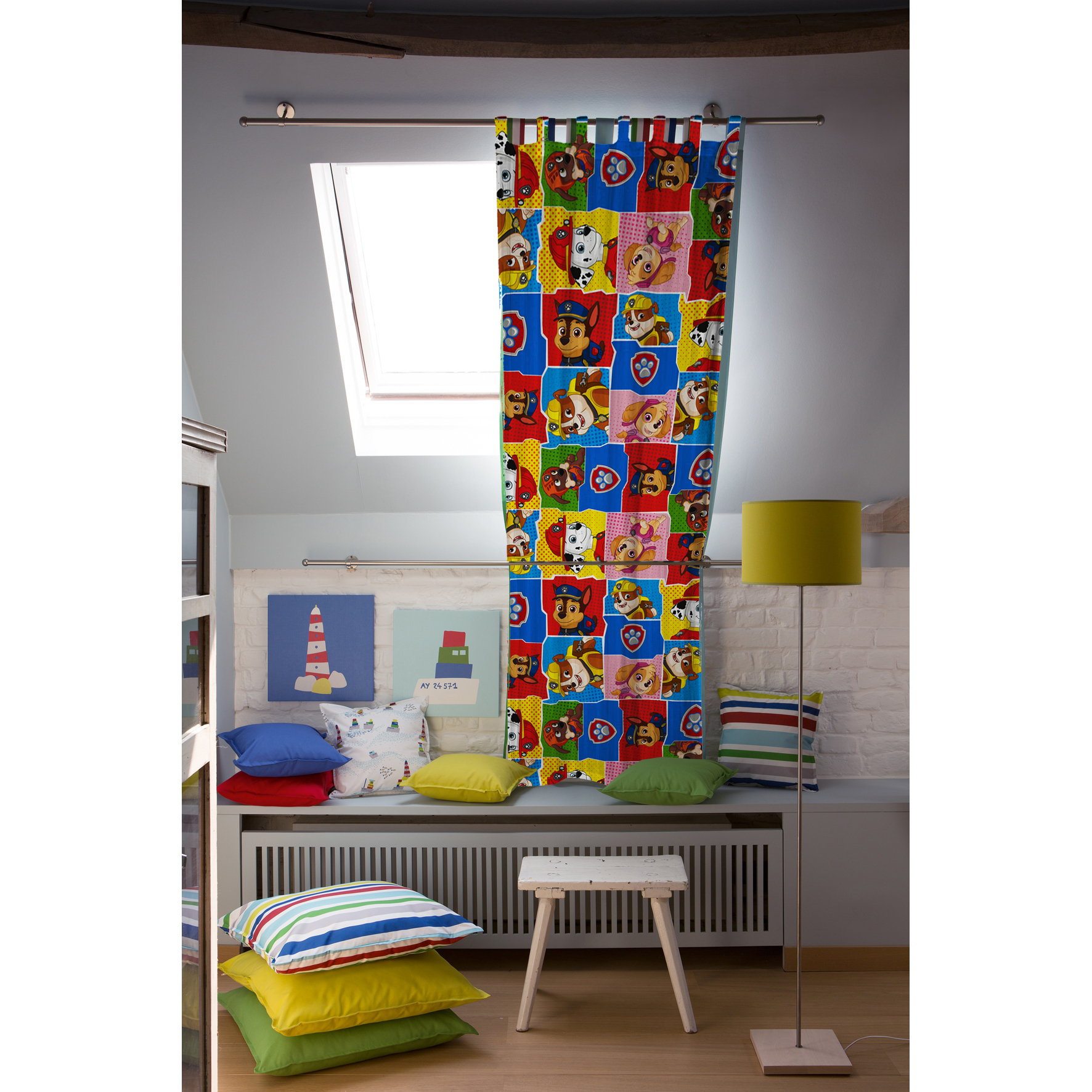 1 super rideau PAT PATROUILLE prêt-à-poser dans une chambre enfant. Rejoins tes compagnons préférés Blaze, Stella, Marcus et tous les autres ! Parfait pour habiller joliment les fenêtres de la chambre de votre enfant. Pratique : les rideaux sont prêts-à-poser, on n'hésite pas !