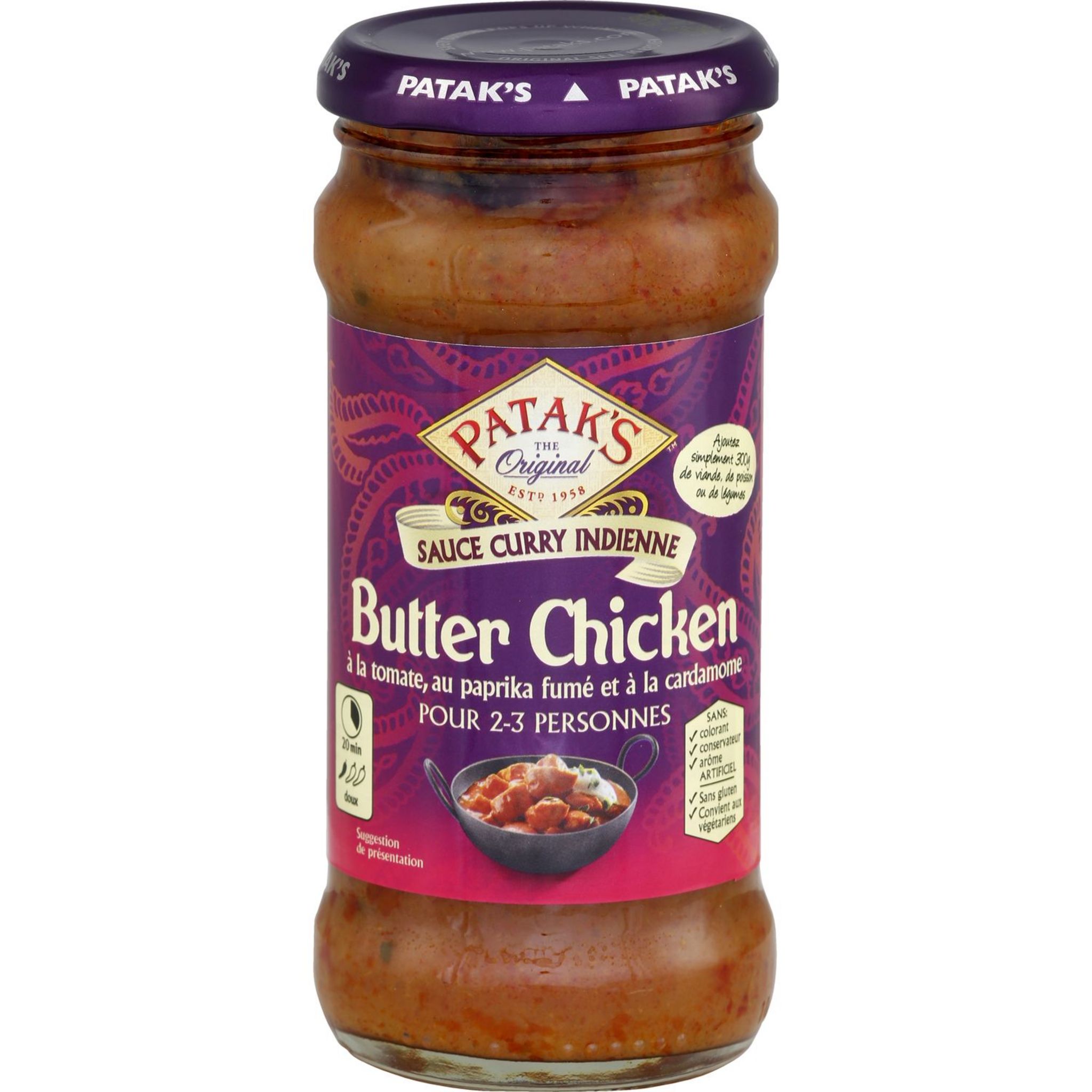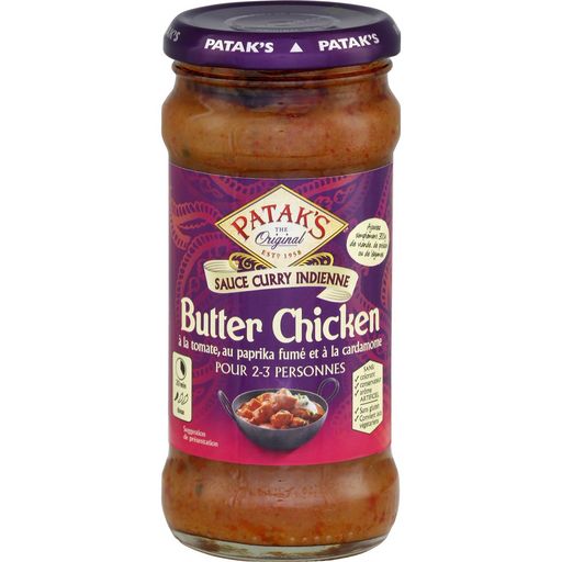 Sauce curry à base de tomate et d'épices La sauce Butter Chicken Patak's est à base de tomate, de paprika fumé et de cardamome. La sauce idéale pour donner à vos recettes de nouvelles saveurs indiennes.