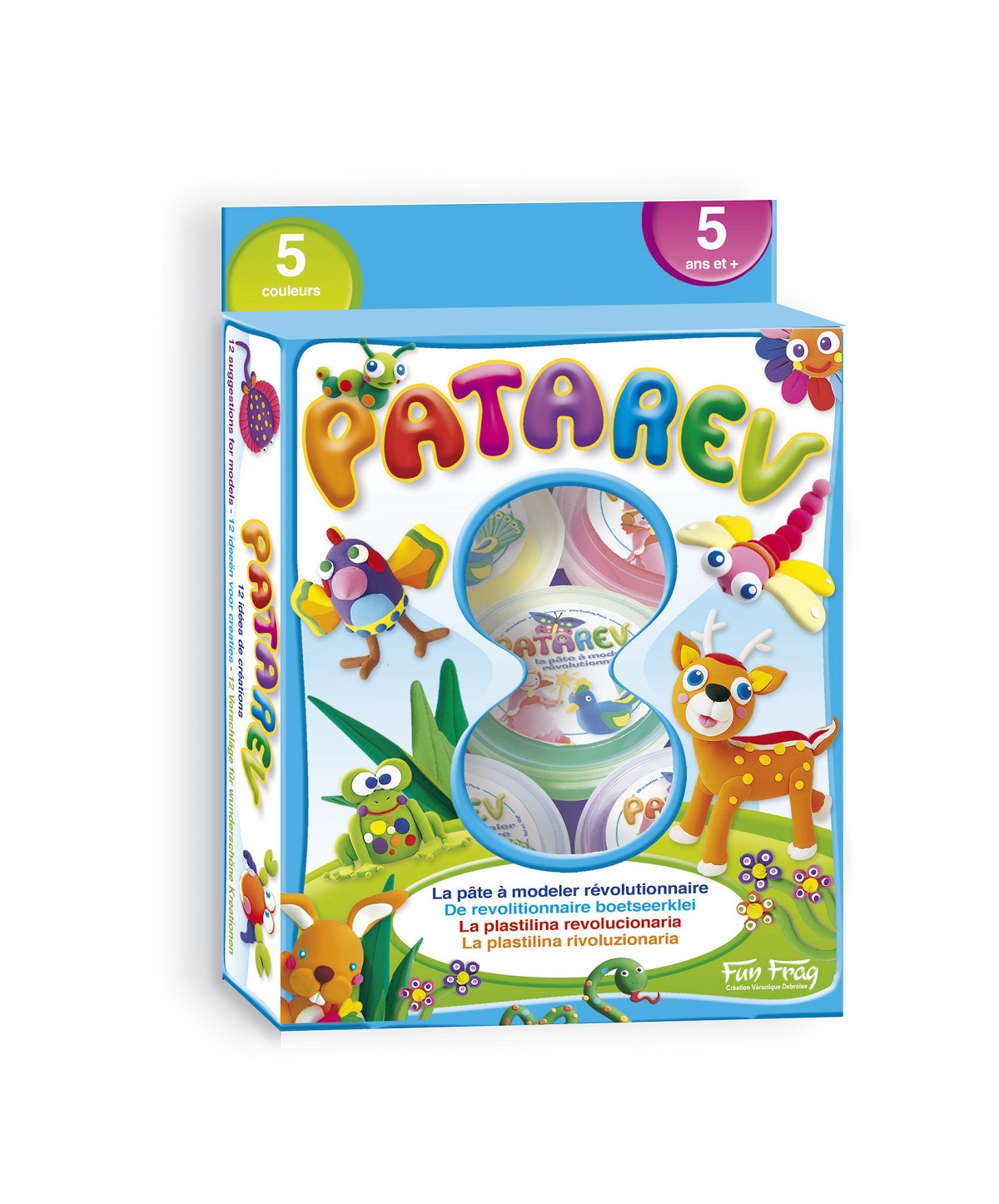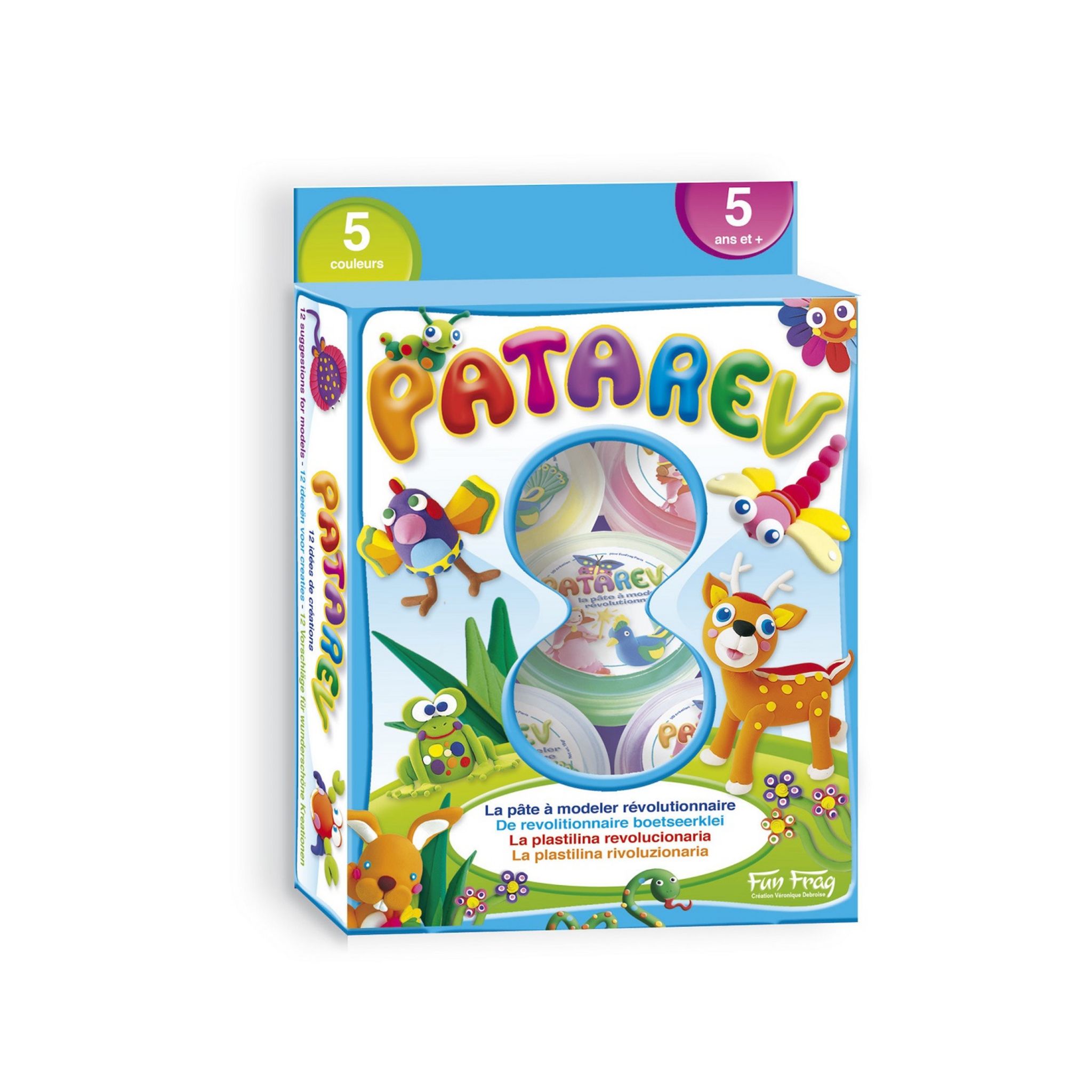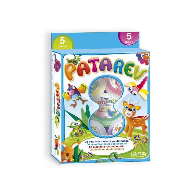 A toi de créer les animaux de ton choix. Pour cela, tu disposes de 5 couleurs. La Patarev est la pâte à modeler dont toutes les mamans ont toujours rêvé : elle ne tâche pas et ne colle ni aux doigts, ni aux tables.