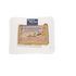 Proportion généreuse de saumon Atlantique délicatement aromatisé de plantes aromatiques. Cœur en mousseline de poisson blanc agrémenté de légumes. Un produit frais tout en contraste de couleur et de texture. Tranche large avec un beau décor en graines de pavot et rondelles de citron.