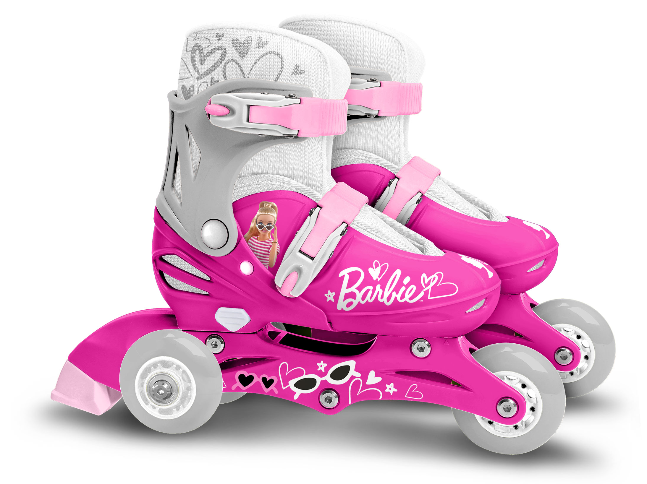 Les patins en ligne STAMP deux en un 3 Roues - Barbie sont conçus pour offrir une expérience de glisse unique et polyvalente. Ces patins évolutifs permettent de passer facilement du tri skate au roller in line, adaptés aux enfants qui aiment explorer différentes formes de glisse. La taille ajustable de 27 à 30 rend ces patins idéaux pour accompagner la croissance de votre enfant.