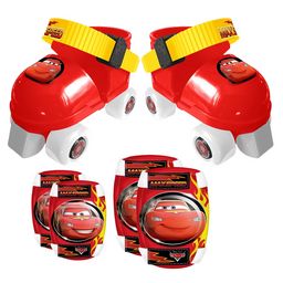 Découvre les plaisirs de la glisse en toute sécurité avec ce pack de patins à roulette avec protections (coudières et genouillères) à l'effigie de ton héros préféré CARS.