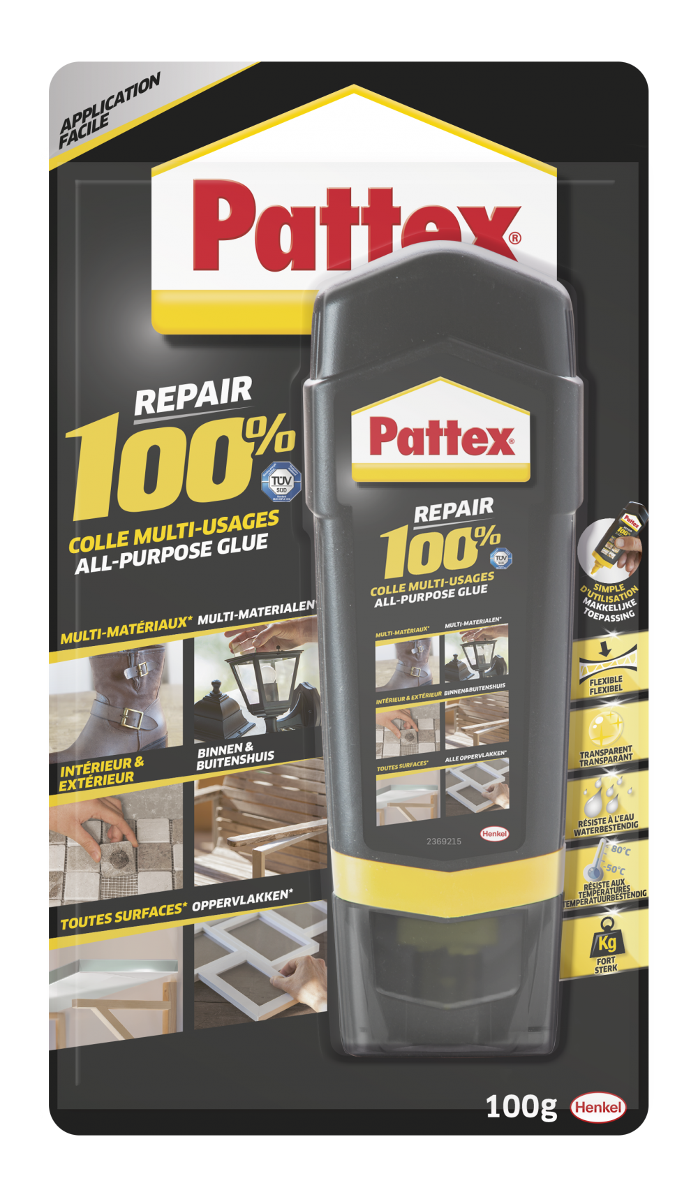 Transparent, idéale moyennes et grandes surfaces de collagescolle en tube rigide liquide de type polymère hybrideNom du produit: Colle réparation liquideUsage du produit: RéparerType de support: Tout type de supportIntérieur / extérieur: Intérieur / extérieurMarque du produit: PATTEXConditionnement:
