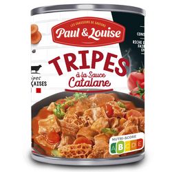 Découvrez notre savoureuse recette de tripes à la sauce Catalane, élaborée à base de tomates de vin blanc et d'une pointe de thym. Une recette traditionnelle cuisinée dans nos ateliers à Bressuire, dans les deux Sèvres, réputées pour leur tradition d'élevage bovin. Une recette riche en protéines, à faible teneur en sucres – Nutriscore B. Viande origine France. Sans conservateur / Sans colorant.